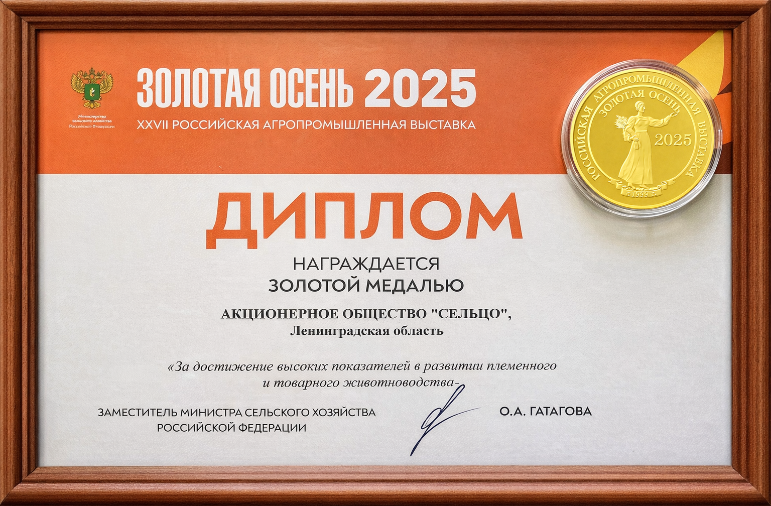 Выставка «Золотая осень» уже более 25 лет объединяет лучших представителей агропромышленного комплекса России. Получение золотой медали — важный показатель доверия со стороны профессионального сообщества и государства.